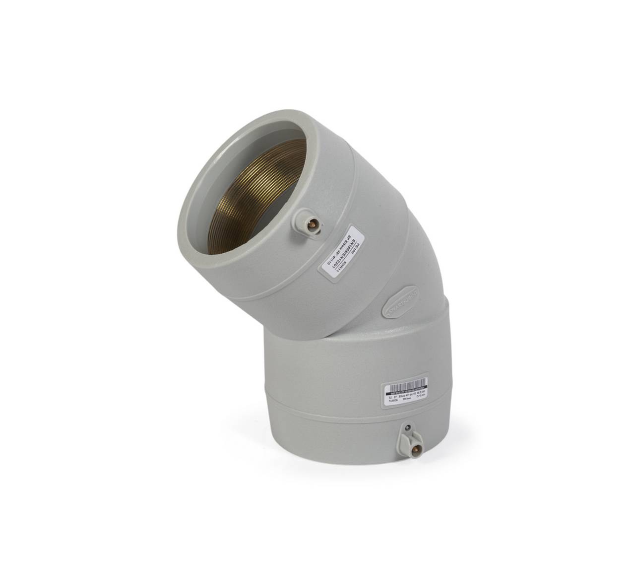 Предназначен для соединения PERT труб одинакового диаметра под углом 45º, используется совместно с литыми переходами, муфтами, тройниками и трубами ПЭ PERT.